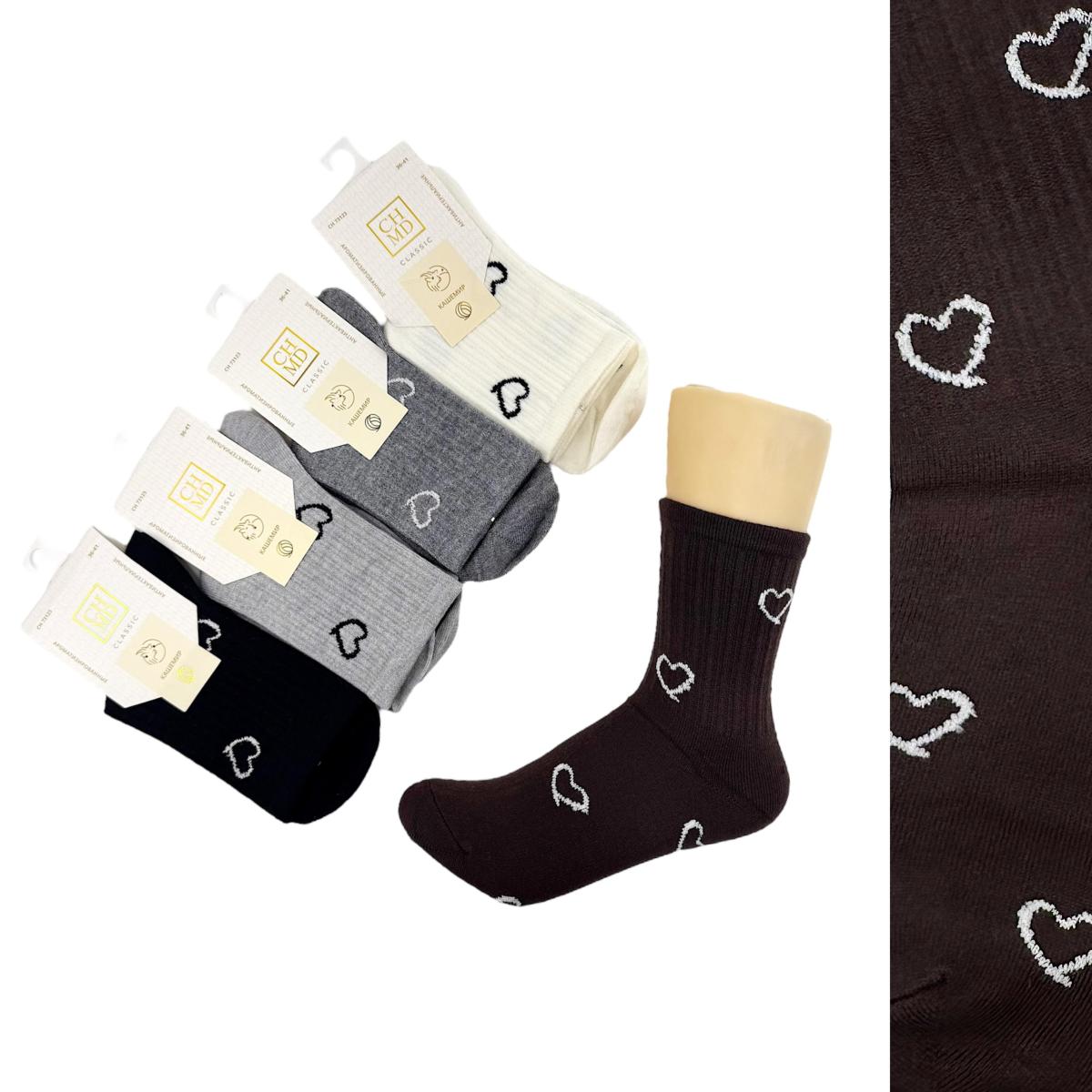 Носки женские CHMD Кашемир рубчик Сердечки релиф
