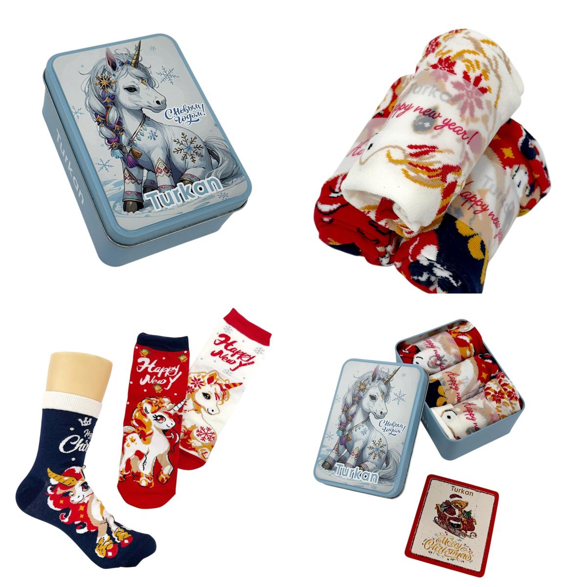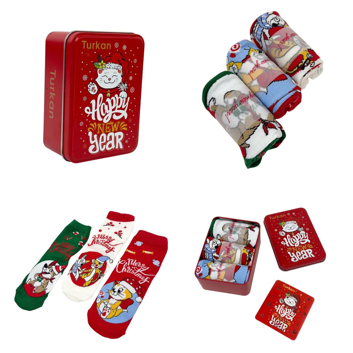 Носки женские Merry Christmas банка