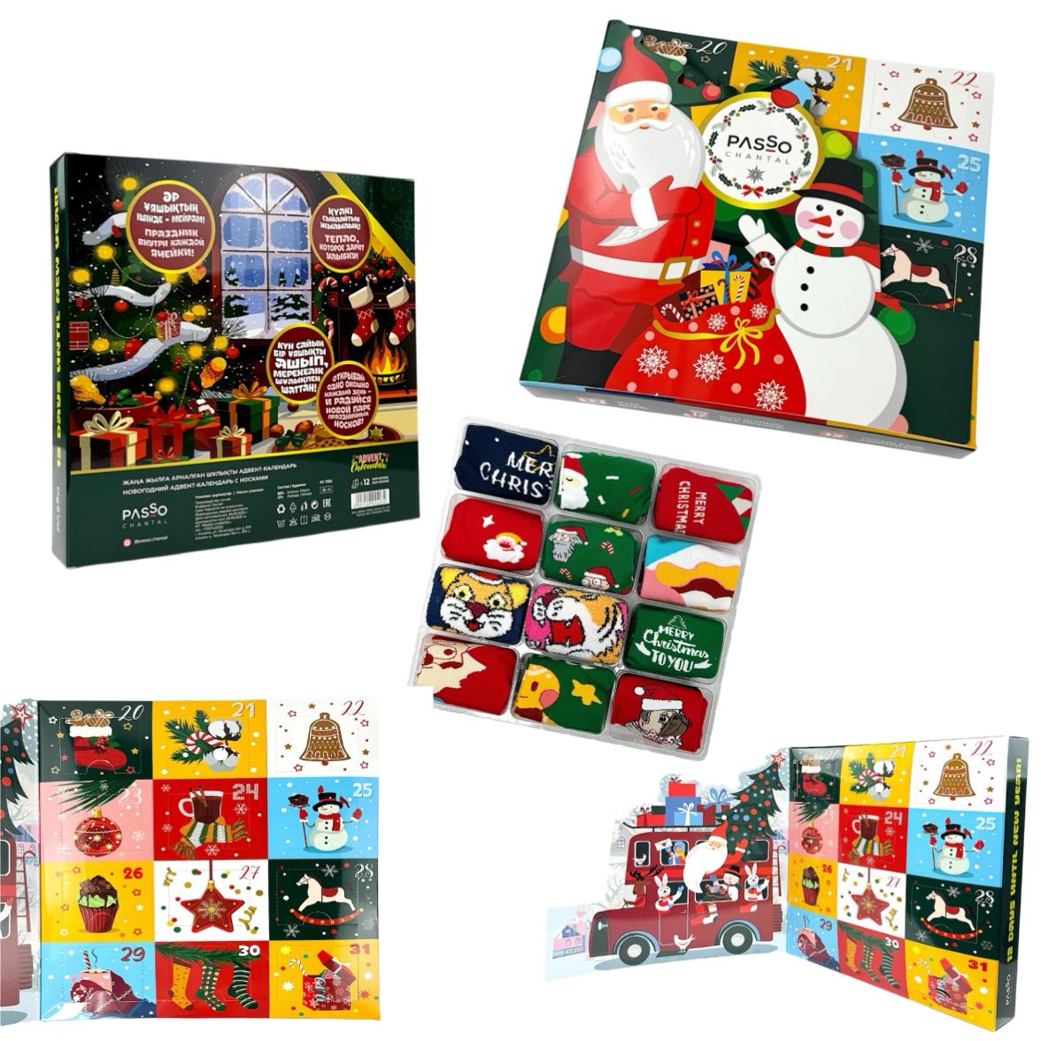 Новогодний Адвент-Календарь с 12 носками Унисекс